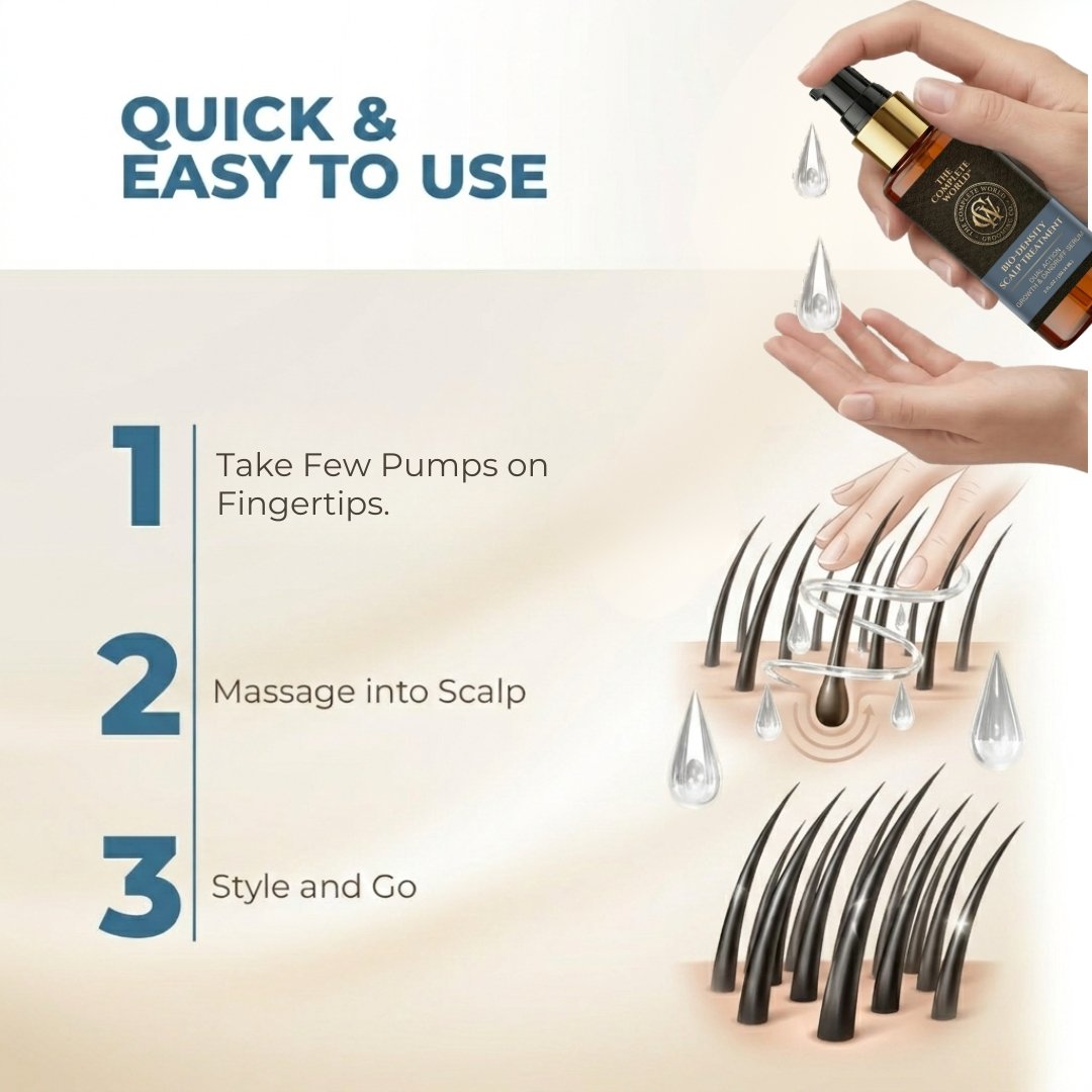 How to Use: Pump a small amount of the serum onto your fingertips. Gently massage directly into the scalp, focusing on areas of thinning or irritation. Do not rinse. Style as usual. For best results, use daily on a clean, dry, or towel-dried scalp.